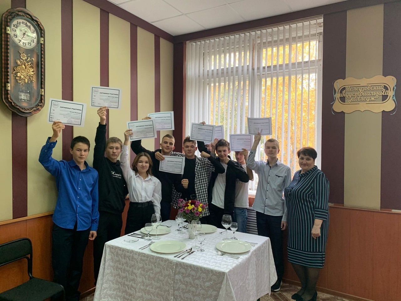 На демонстрационной площадке «Ресторанный сервис» под руководством старшего мастера колледжа Ирины Прокудиной обучающиеся узнали много нового о профессии «Официант», о назначении каждого вида посуды, приборов, стекла. Также научились складывать полотняные салфетки и сервировать праздничный стол.