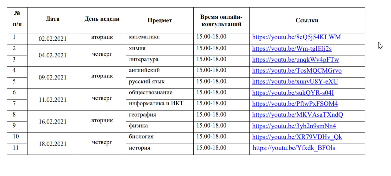 График онлайн-встреч представителей РПК, кафедр ГАУ ДПО ИРО РБ с учителями образовательных организаций по всем учебным предметам по подготовке к государственной итоговой аттестации по образовательным программам среднего общего образования (ЕГЭ)